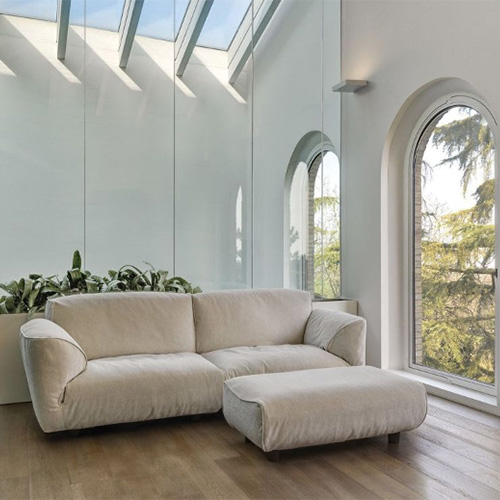 Het is opgevuld met gellyfoam en een royale hoeveelheid ganzendons: het resultaat is extreem comfort. Met het Smart Cushion kunnen de rugleuningen achterover worden gezet voor ultieme ontspanning. Elk zitelement biedt comfortabel plaats aan twee personen. Een sectionele bank die lineair of hoekig kan worden samengesteld in veel verschillende maten en vormen. De dieper liggende delen en de poefs maken het aanbod compleet, voor een veelzijdiger gebruik van de bank.