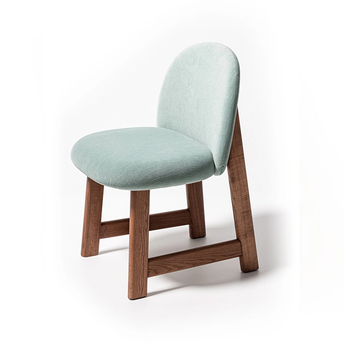 De aanpak die is gebruikt bij de constructie van de gestoffeerde stoel Pheaby, ontworpen door Patricia Urquiola voor Moroso, presenteert zich als een ongewoon antagonisme tussen ambachtelijk ontwerp en industrieel denken, dat zichzelf oplost in de pure structurele efficiëntie van de componenten. De poten, waarvan de voeten meer op een schraag van een timmerman lijken dan op die van een stoel, ondersteunen een zacht afgeronde zitting zonder scherpe randen.