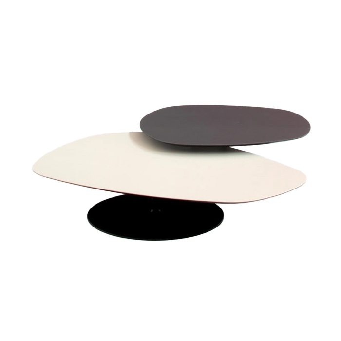 Twee tafels, horizontale vlakken zoals tweedimensionale projecties van organische vormen, glijden over elkaar heen, overlappen elkaar. Het resultaat is een ongelijkmatige en harmonieuze compositie, versterkt door de materiaalkeuze en kleur van de vloer. Phoenix, de fantastische vogel van Arabië die op een brandstapel stierf om uit zijn as herboren te worden, er is geen spoor meer; de verwijzing is eerder naar sciencefiction, de legendarische USS Phoenix NCX-101138 uit Star Trek.